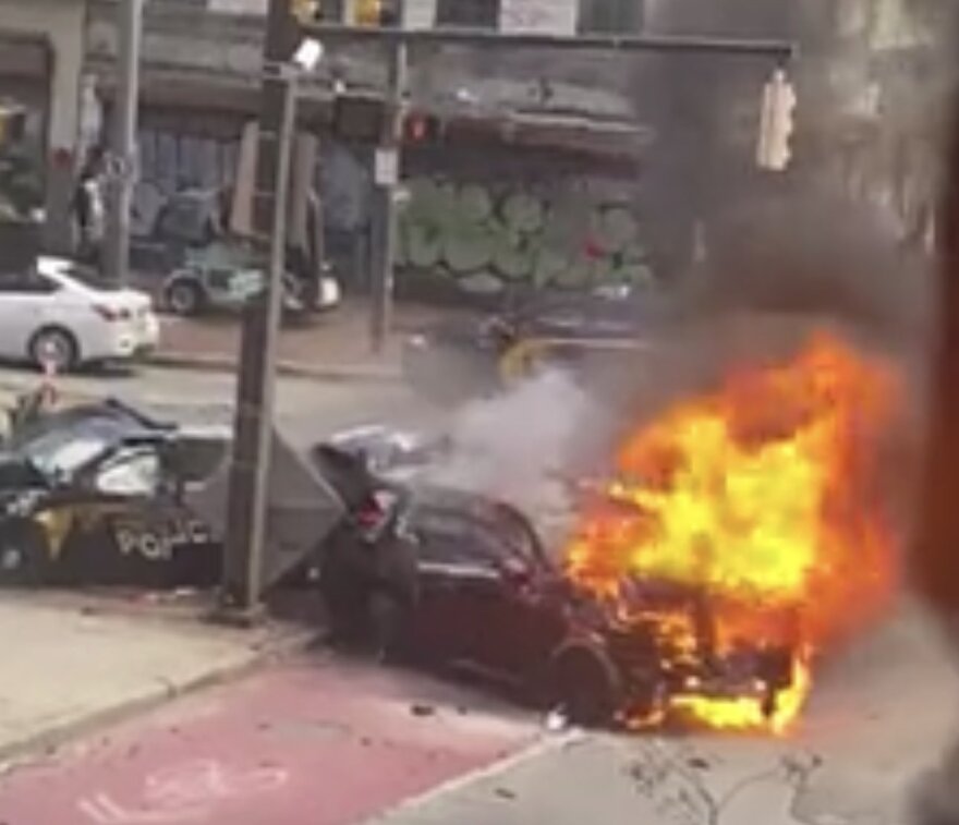 (WEAA)— Officials are on scene of a police-involved vehicle accident and fire on West Fayette Street and North Howard Street.
