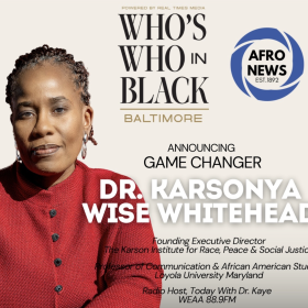 Baltimore, Maryland (May 2021): From speaking at the White House to speaking in the classroom, Dr. Karsonya "Kaye" Wise Whitehead, Ph.D., the host of Today With Dr. Kaye and an associate professor for Communication and African and African American Studies—is known for having an informed opinion about issues that are happening within Baltimore City and around the country. Passionate, edgy, and unapologetic, Dr. Kaye is known for being deeply engaged with the community—from meeting monthly with the members of her Itty-Bitty Fan Club (listeners under the age of 12) to hosting Coffee and Conversation talks on Zoom to writing a bi-weekly Opinion Editorial column for the AFRO. She also finds a way to engage her audience by challenging them to think deeply about political, social, and cultural issues—sometimes with humor, sometimes with sadness, but always with an ear that bends toward the truth. Dr. Kaye is always looking for ways to make connections and have conversations that matter—"I believe that everyone should do the hard work to uncover the truth and speak it as loud as possible, even if no one is listening. Your life and what you stand for will be recorded by history, and the wind will carry your truth."